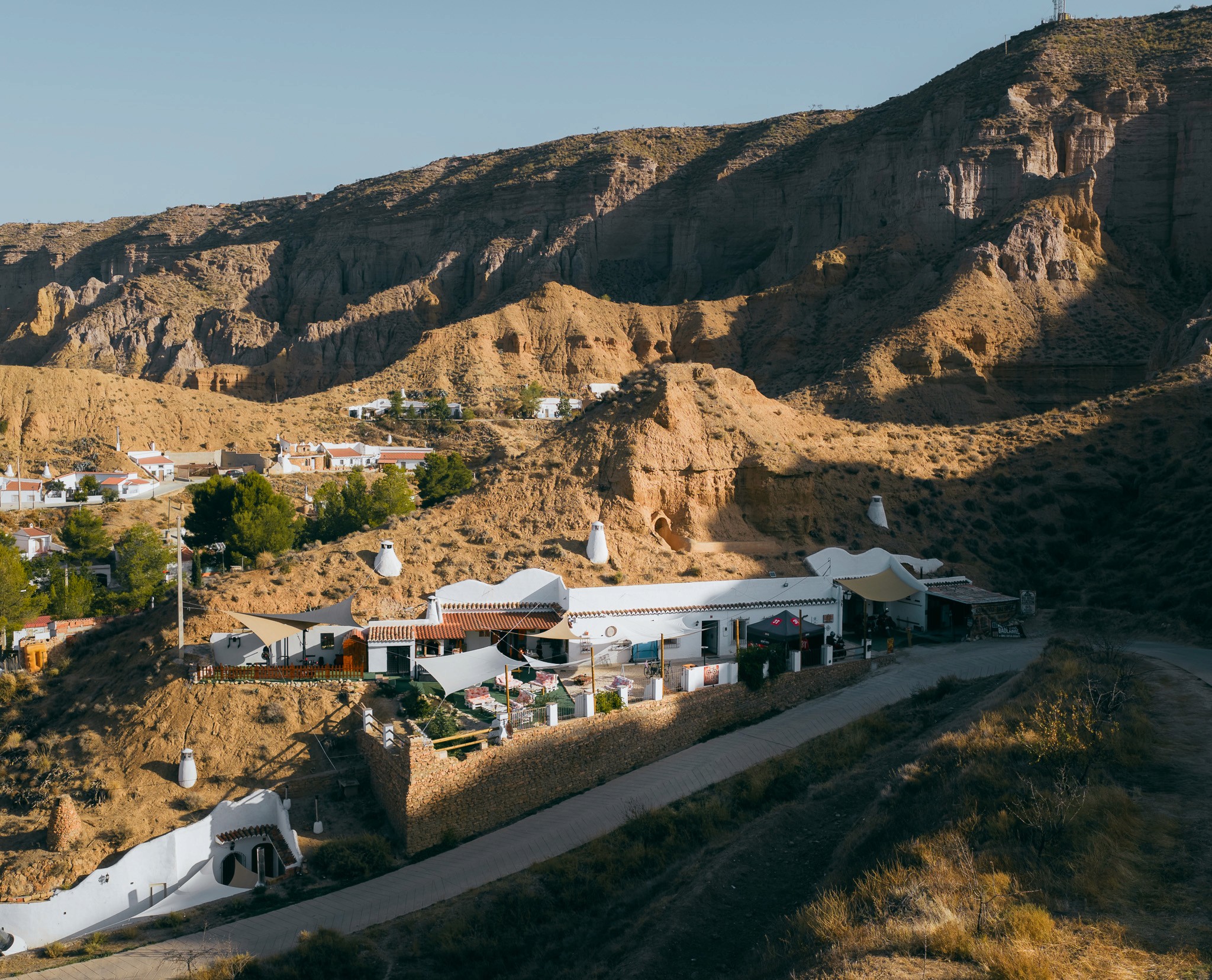 Nuestra base durante el workshop será un hotel cueva , un espacio único y acogedor excavado en la roca, pensado para ofrecer comodidad, silencio y una convivencia natural dentro del desierto de Gorafe.